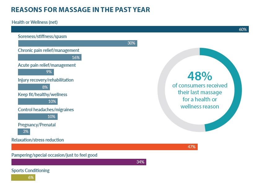 of consumers indicated they received massage to relieve Soreness/stiffness or spasm.